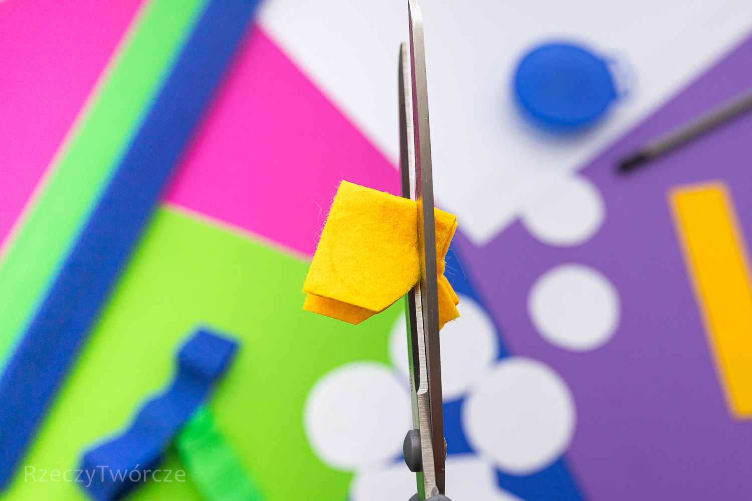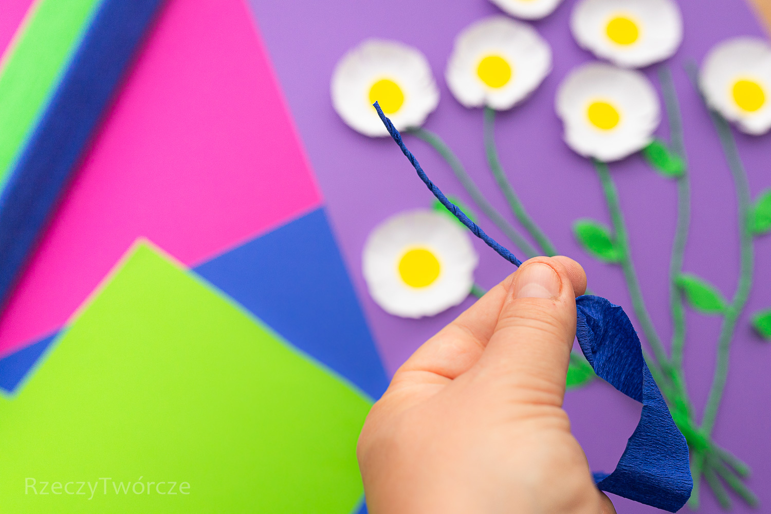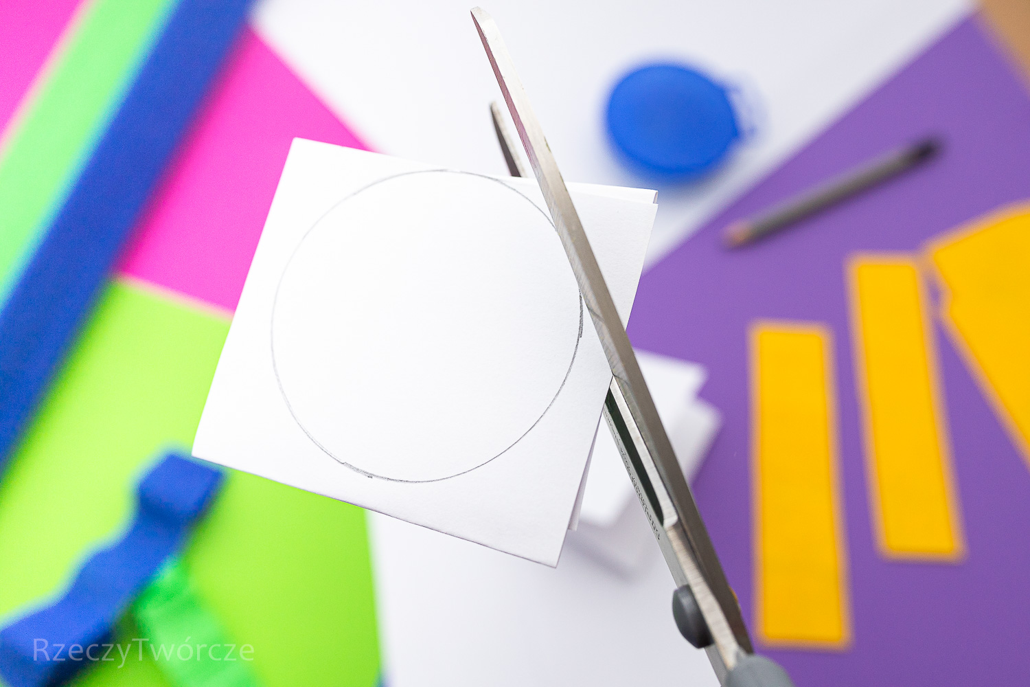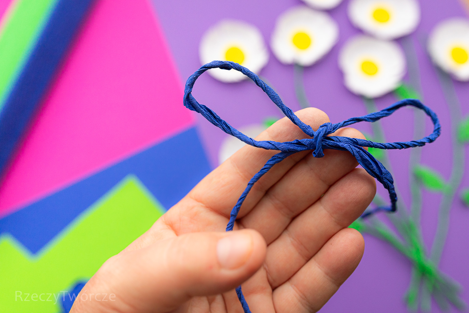 Odrysowujemy kółka na białej kartce: mogą być w jednym rozmiarze, ale też ciekawy efekt uzyskamy jeśli wytniemy kółka większe i mniejsze - będą to nasze kwiatki - przypominają one stokrotki czy rumianki, a moi uczniowie słusznie zaobserwowali, że wyglądają jak jajka sadzone:) Polecam wycinać kółka po kilka na raz, ze składanych pasków papieru. Następnie nacinamy kółeczka w kierunku do ich środka tak, aby powstały dookoła płatki. Warto sobie skrócić czas pracy nacinając kilka kółek razem. Z żółtej kartki lub najlepiej filcu wycinamy okrągłe środki kwiatów. Zanim wkleimy środki, warto zaokrąglić końce płatków, przeciągając brzegi czymś tępym (końcówkę nożyczek, ołówka itp.) Po wklejeniu środków czas na wykonanie zielonych łodyżek i listków. Można zrobić je z bibuły, najpierw skręcając podłużne jej paski, a następnie wycinając listki. Możemy również wykonać je z zielonego papieru, wycinamy wtedy cieniutkie paski i liście. Układamy całość bukietu na kolorowej sztywnej kartce i kiedy jesteśmy zadowoleni z efektu, doklejamy elementy. Na sam koniec przyklejamy kokardę, którą można wykonać ze wstążki, tasiemki, sznurka czy zwiniętego paska bibuły. Jeśli bukiet ma być prezentem na daną okazję, warto wypisać karteczkę z życzeniami lub nazwą okazji i przykleić w dogodnym miejscu. Oczywiście można pokusić się o dodatkowe elementy jak motyle czy biedronki, jednak warto tu zachować zdrowy umiar. Przy takich okolicznościowych kompozycjach sprawdza się zasada: "Co za dużo, to niezdrowo"